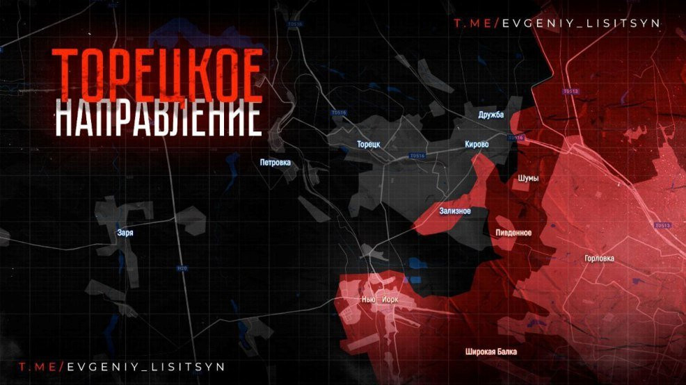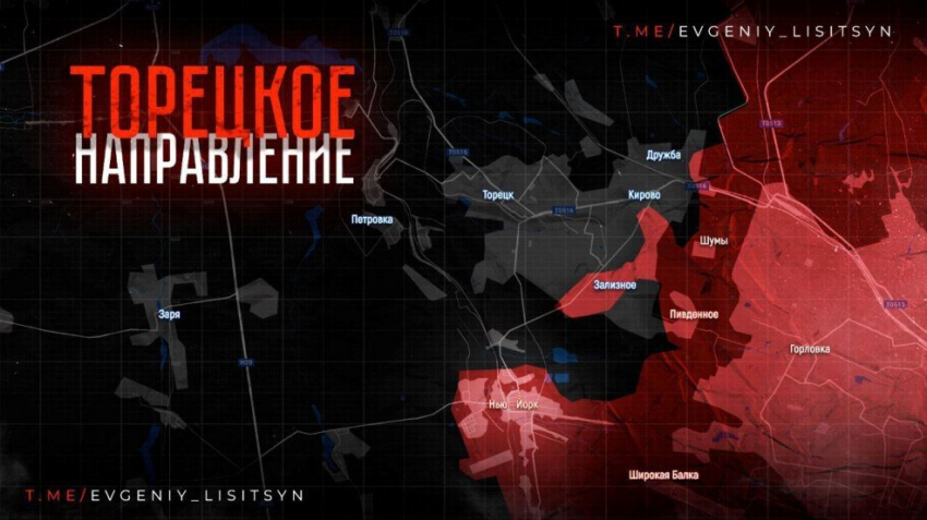 На Торецком направлении ВС РФ продвинулись западнее Новгородско (Нью-Йорка), заняв леса и лесопосадки.Наши войска приблизились к населённым пунктам: Пантелеймоновка, Валентиновка и Сухая Балка.