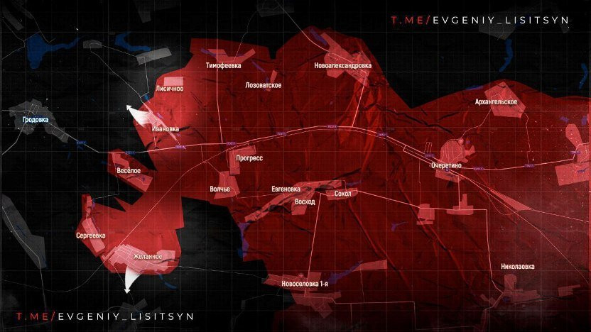 ВС РФ выбили боевиков ВСУ из населенного пункта Желанное и продвинулись на участке 8,3 на 2,5 км. Ранее сообщалось об установлении контроля над населенными пунктами Ивановка, Свиридоновка, Лисичное. Ведутся боевые действия в Гродовке.