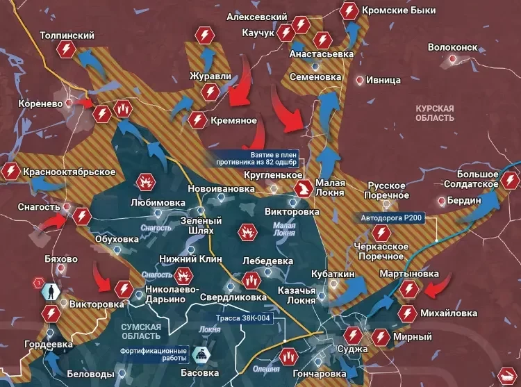 Внутри зоны прорыва ВСУ наступают также в направлении Коренево и самого Курска.