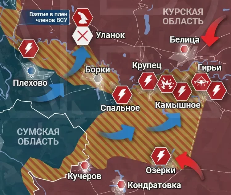 Карта боевых действий в Курской области по состоянию на 15.08.2024
