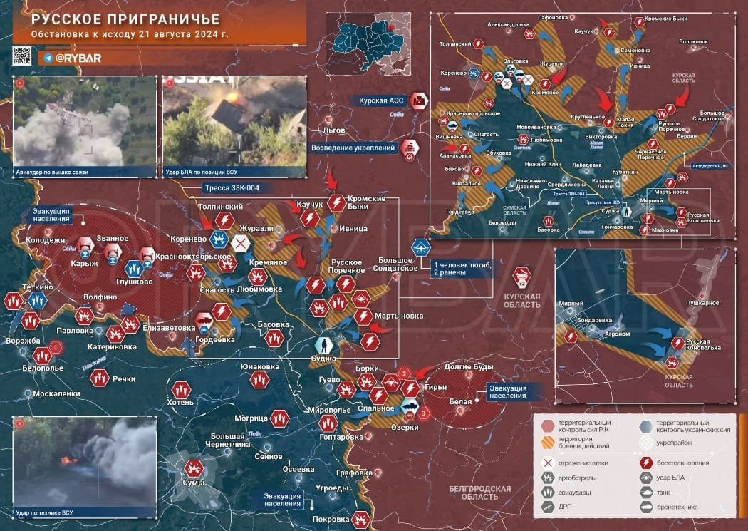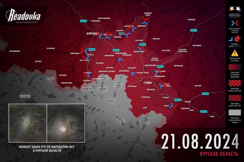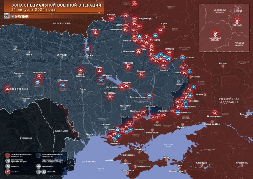 Новая карта боевых действий в зоне СВО на Украине от 22.08.2024