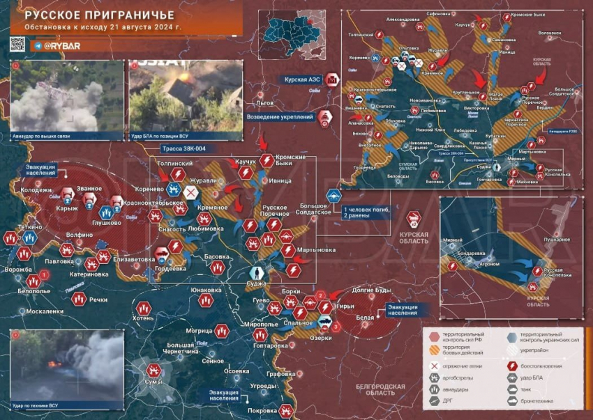 Южнее Суджи ВСУ пытаются не дать русской армии приблизиться к Куриловке и Гуево у реки Псел. В случае успеха ВС РФ могут перерезать трассу от Суджи к госгранице, создав угрозу снабжения всей украинской группировки. Под Снагостью ВСУ пытаются завладеть трассой 38К-006, безуспешно атакуя Апанасовку, Бяхово и Вишневку. Контроль над этой дорогой необходим неприятелю для налаживания логистики.