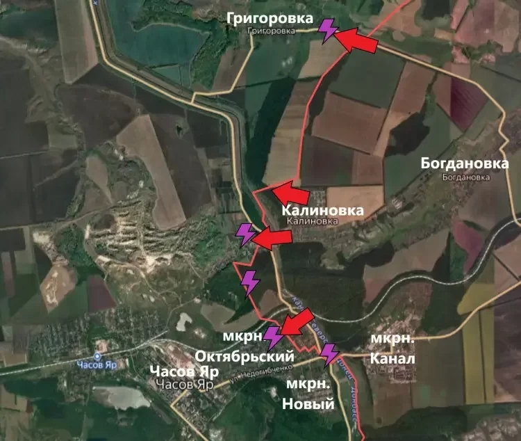 В Часов Яре бои идут в восточной части микрорайона Октябрьский. ВКС РФ постоянно наносят удары по позициям ВСУ, однако это не сильно мешает врагу обороняться. Продвижение подразделений ВС РФ затруднено из-за постоянных ударов беспилотниками врага. Наши операторы БПЛА также работают, не покладая рук, информирует PulsePen.