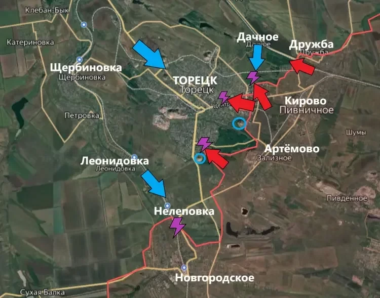 На Торецком направлении тяжелые бои продолжаются в северо-западной части Торецка. Приходят сообщения, что нашим бойцам удалось взять под контроль территорию местной подстанции. Также продолжаются бои за исправительную колонию, где противник создал мощный укрепрайон. Об этом в своем Telegram-канале пишет военкор Евгений Лисицын.