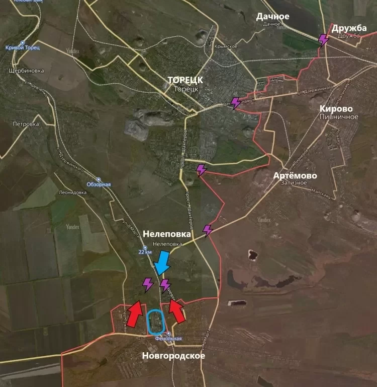 На Торецком направлении противник был выбит с территории шахты Новая. Был взят примыкающий к ней террикон, который дает нам преимущество при штурме города. Вместе с этим российские войска двигаются на северной окраине Торецка от Дружбы к Дачному.