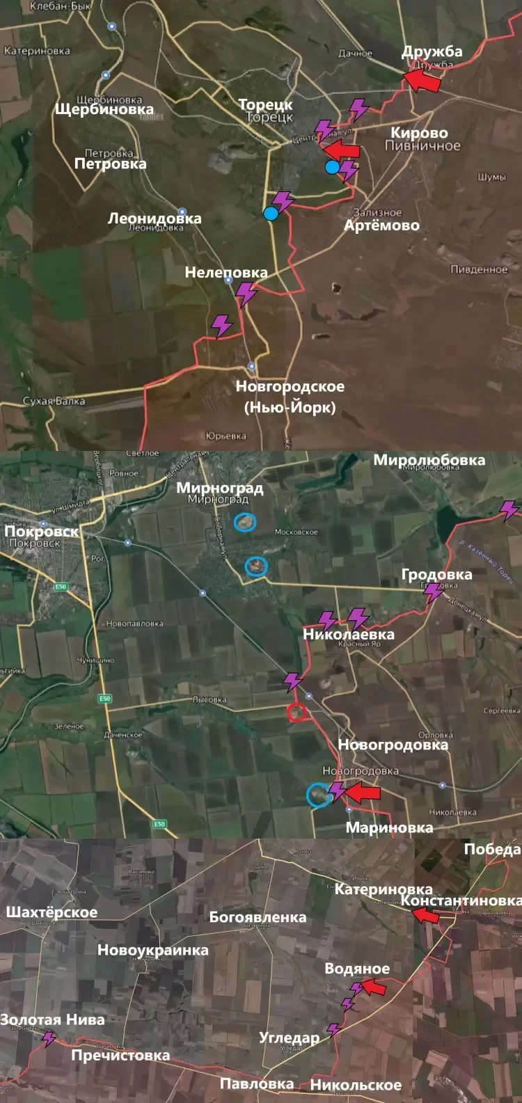 На Угледарском направлении подразделения ВС РФ начали продвижение из Константиновки в сторону Катериновки. Возможно, это начало создания большого мешка или котла на Угледарском направлении. Однако на пути ВС РФ ещё довольно много мелких населённых пунктов, за которые враг наверняка будет цепляться.