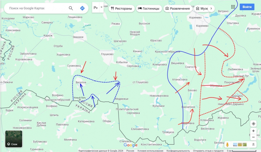 Карта боевых действий в Курской области на 15.09.2024