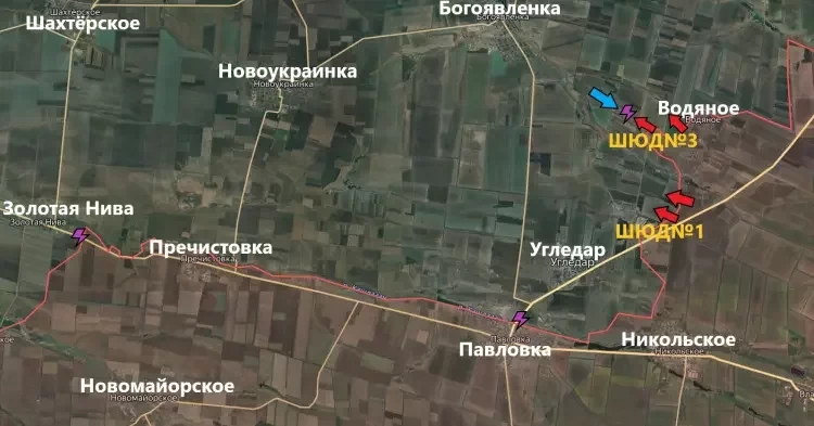 На Угледарском направлении армия России расширяет зону контроля в районе шахты "Южнодонбасская №3" (ШЮД№3) и шахты "Южнодонбасская №1" (ШЮД№1). Враг пытается проводить контратаки из Богоявленки по направлению к Водяному, но успеха не имеет.