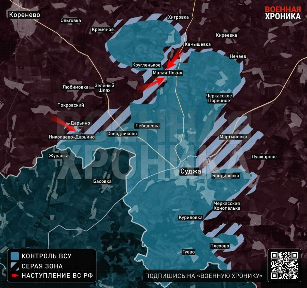 Поступают разрозненные данные о том, что в Курской области российские войска вышли к границе с Украиной и взяли село Дарьино. Через него и соседнее Николаево-Дарьино, а также Свердликово украинская армия заходила на территорию РФ. Если эта информация подтвердится, то ВСУ придётся срочно решать, что делать: пытаться удержаться там, куда удалось пробиться, или срочно прикрывать тылы и логистические маршруты.