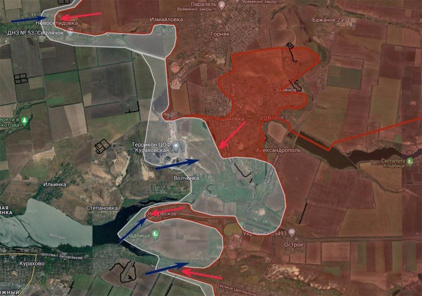 На Кураховско-Константинопольском направлении под контроль российских войск перешла территория ЦОФ «Кураховская», большая часть Кураховки и Зоряное.