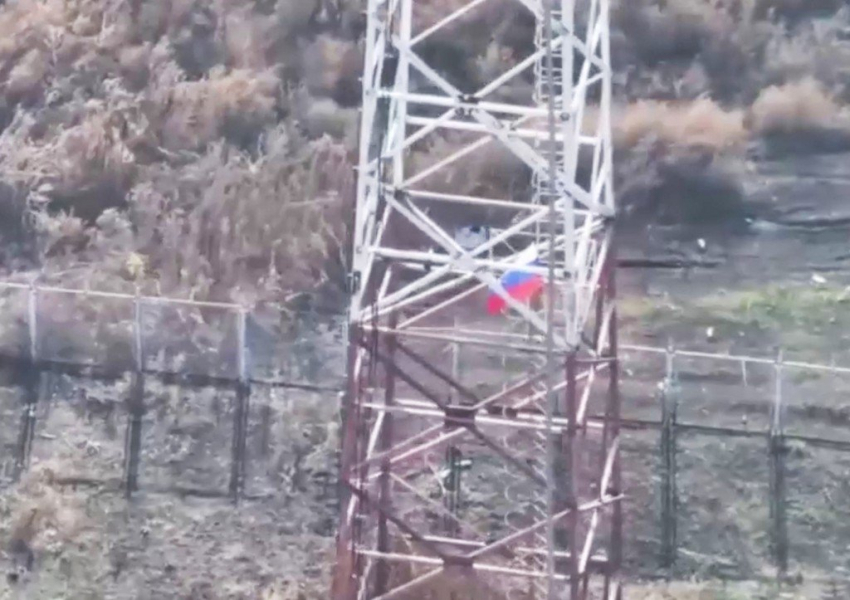 Российские военнослужащие закрепили флаг РФ на телевышке в селе Кругляковка Харьковской области.