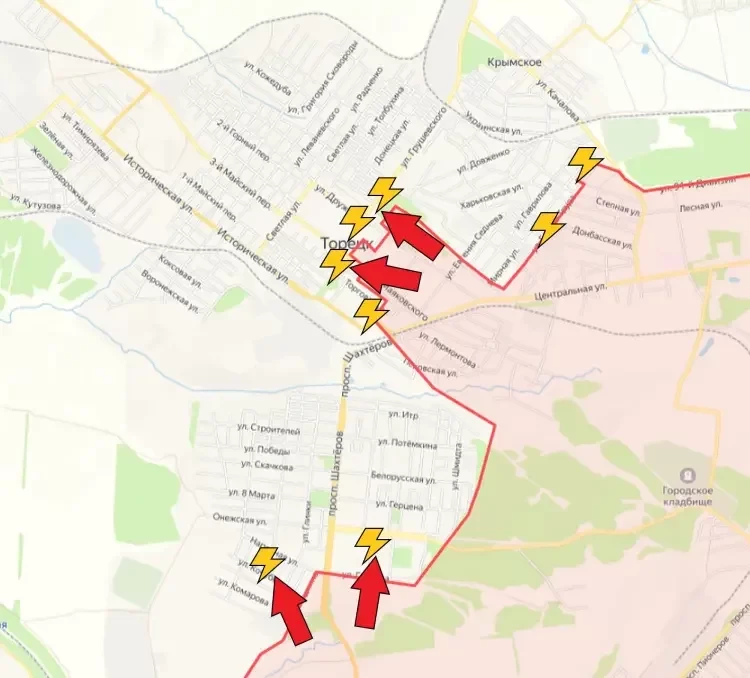 За последние два дня ВС РФ немного расширили зону контроля в центре Торецка. Однако, некоторые источники утверждают, что эти территории уже были под контролем ВС РФ, а сейчас мы их отбили обратно после того, как враг отбил их у нас. В общем, идут ожесточённые бои с переменным успехом.