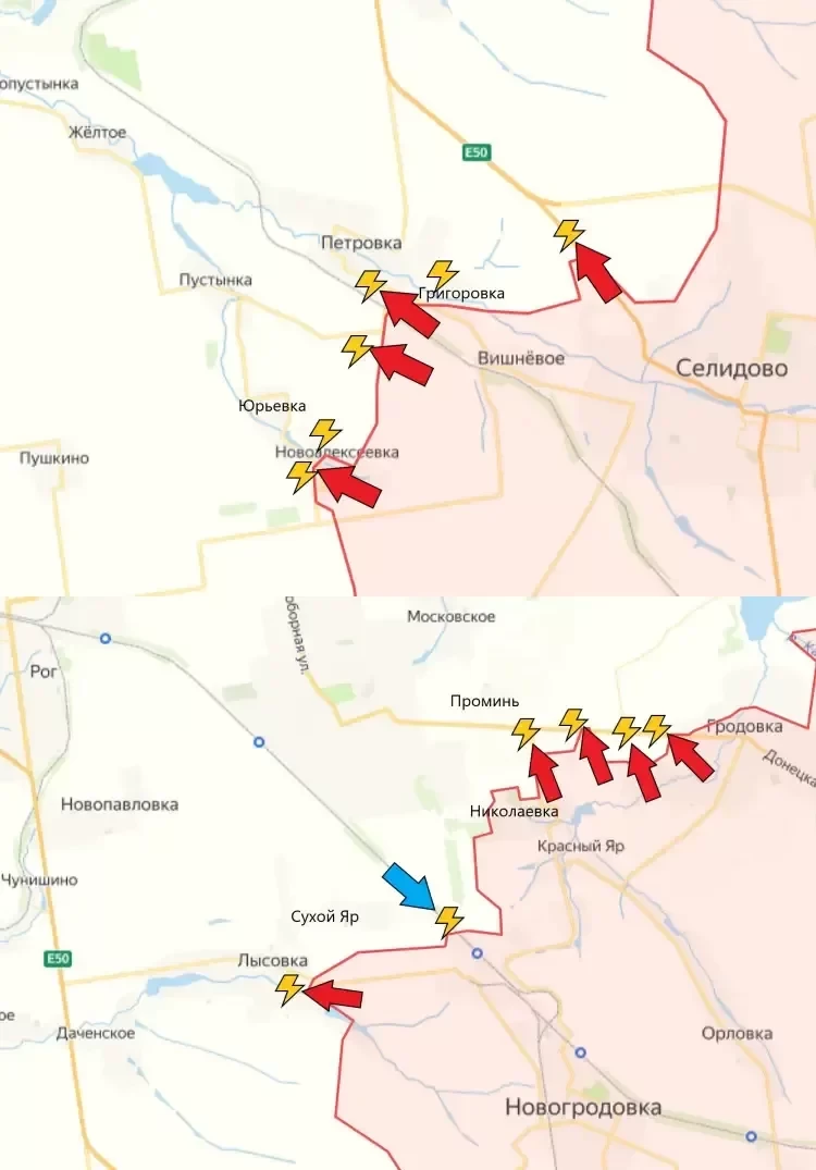 На Покровском направлении фиксируются активные боевые действия, российские силы продвинулись на 1-2 км, цель - блокировать дорогу на Покровск.