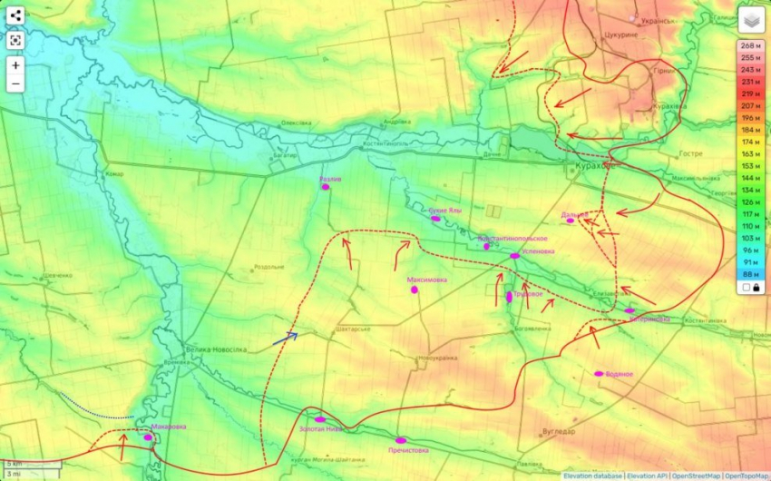 Чуть севернее, лежит последний серьезный рубеж обороны ВСУ, который прикрывает с запада район Большой Новосёлки и последнюю удобную дорогу снабжения (с запада) этой группировки, сообщает Юрий Подоляка в своём Telegram-канале.