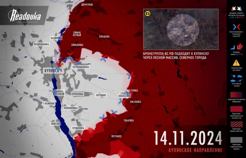 ВС РФ активно наступают на Кураховском и Купянском направлениях: карта боевых действий на 15.11.2024 в зоне СВО