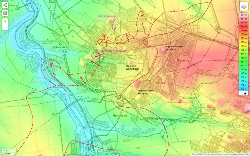 Вчера мы продолжали двигаться. Как в центре города (по направлению к шахте «Торецкая»), так и в районе Забалка (к терриконам шахты «Центральная»).