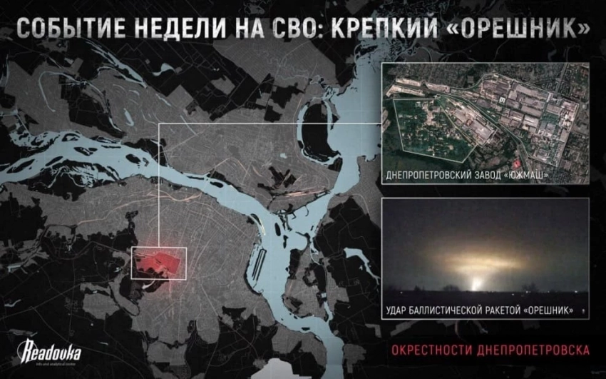 Вскоре российский лидер расставил все точки над «i» и выступил со специальным заявлением. По заводу ударили гиперзвуковой баллистической ракетой «Орешник» с безъядерным оснащением. Ракета достигает скорости 10 махов, а траектория полета «Орешника» фактически исключает возможность перехвата.