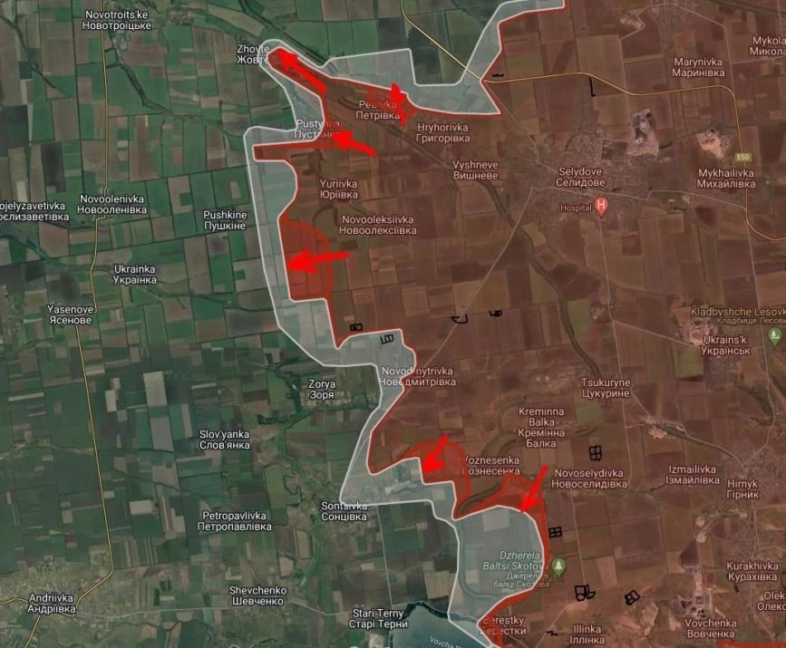 Сообщается, что ВС РФ взяли под контроль населенные пункты Новоселидовка и Петровка.
