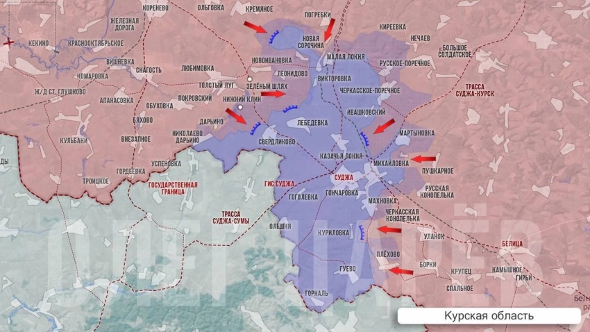 В Мартыновке, что под Суджей, идут ожесточённые кровопролитные бои - российским бойцам удалось зайти на окраины. Тут уличные бои ведет 11-я бригада ВДВ. Также активные боестолкновения продолжаются в районе Плехово.
