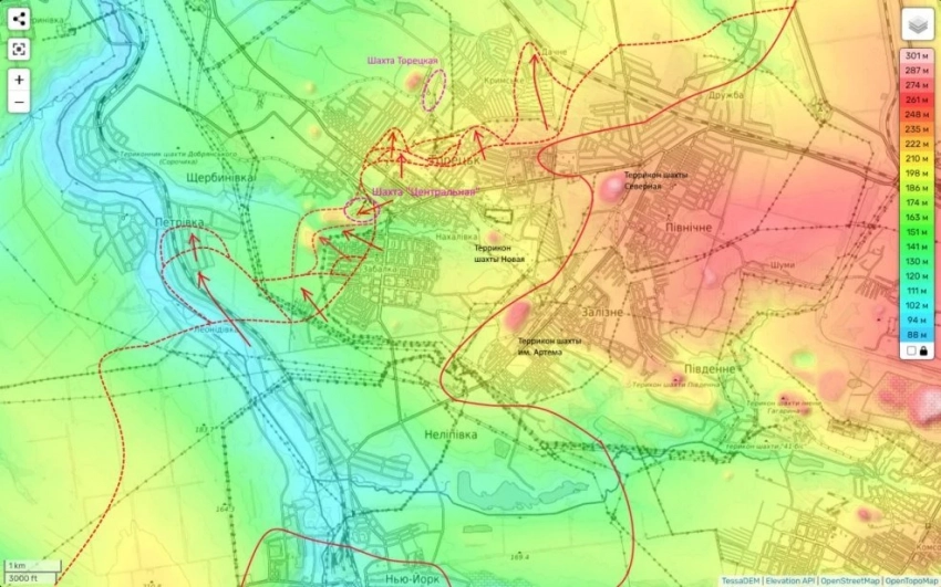 Далее у ВСУ останется здесь только один сильный опорный пункт - террикон и шахта «Торецкая», расположенная на северной окраине города. А еще несколько небольших терриконов за его западной окраиной