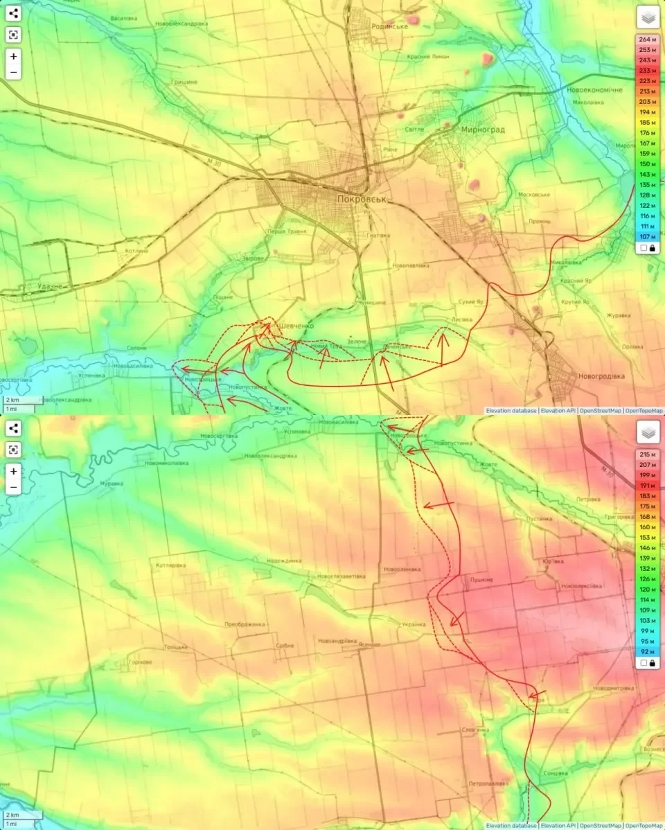 Что уже является угрозой следующей линии обороны ВСУ юго-западнее Покровска по селам Песчаное-Зверовое-Первое Мая). Прорыв ее станет большой проблемой для противника. Занятие этой линии откроет нам путь к охвату города с запада.
