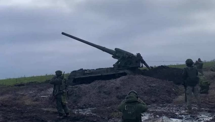 Бойцы ВС РФ из 203-мм гаубицы «Малка» ударили по скоплению ВСУ под Курском