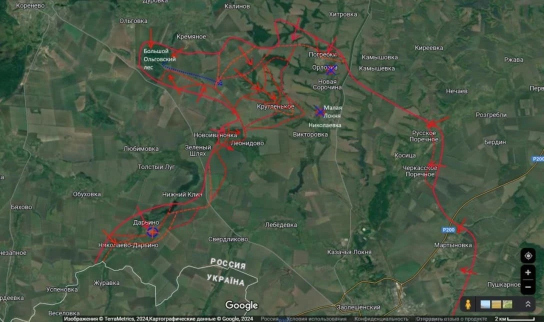 Карта боевых действий в Курской области от Юрия Подоляки на 23.12.2024