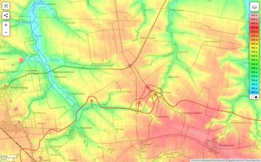 Вместе с этим он указал на ситуацию на Мирноградском направлении, где противник, потеряв контроль над позициями в Воздвиженке, пытается удержать фронт на подступах к трассе Покровск - Константиновка (которой он уже по факту в этом месте нормально пользоваться не может.