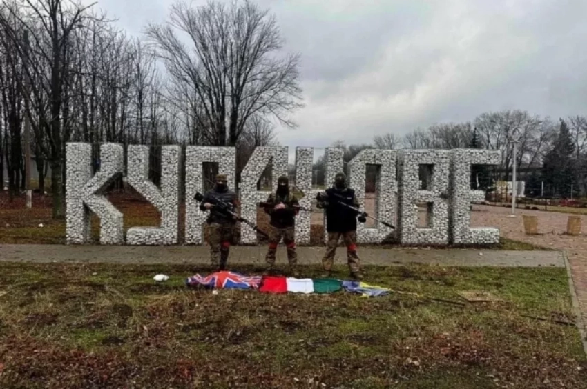 Бойцы ВС РФ сфотографировались с трофейными вражескими флагами в Курахово