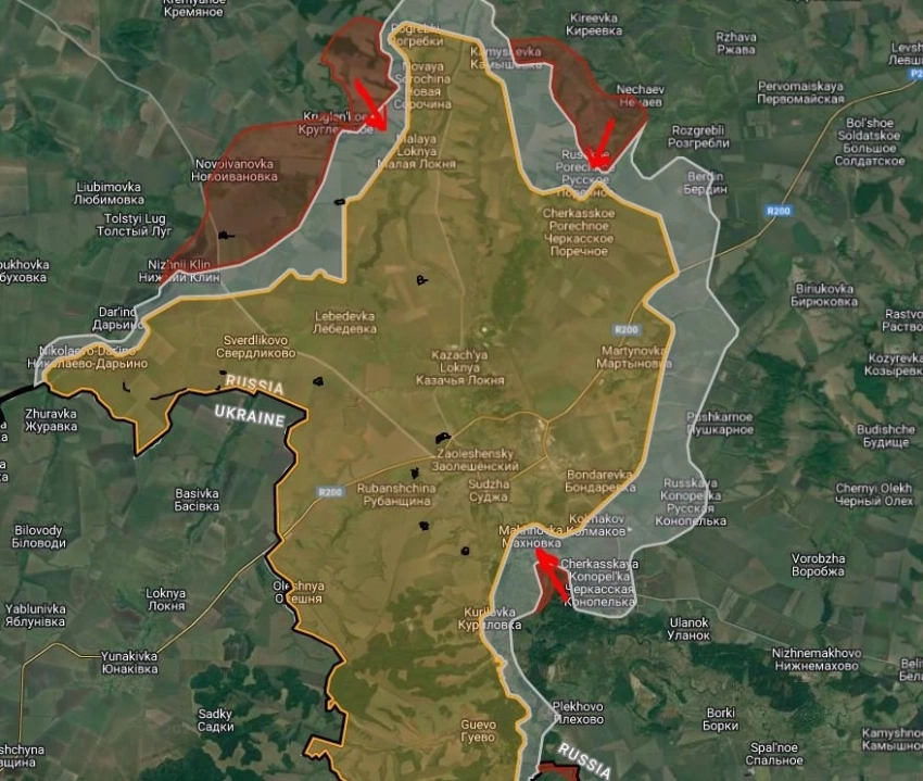 Также отмечаются интенсивные боестолкновения в районе Косица и Русское Поречное, российские войска продвинулись на глубину до 3.25 км.