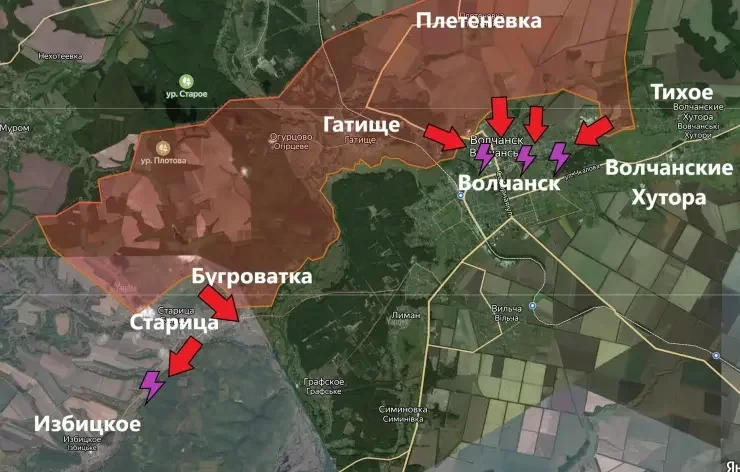 Восточнее Волчанска российские подразделения расширяют зону контроля, давят ВСУ на северной окраине самого города, в Плетеневке и Тихом.