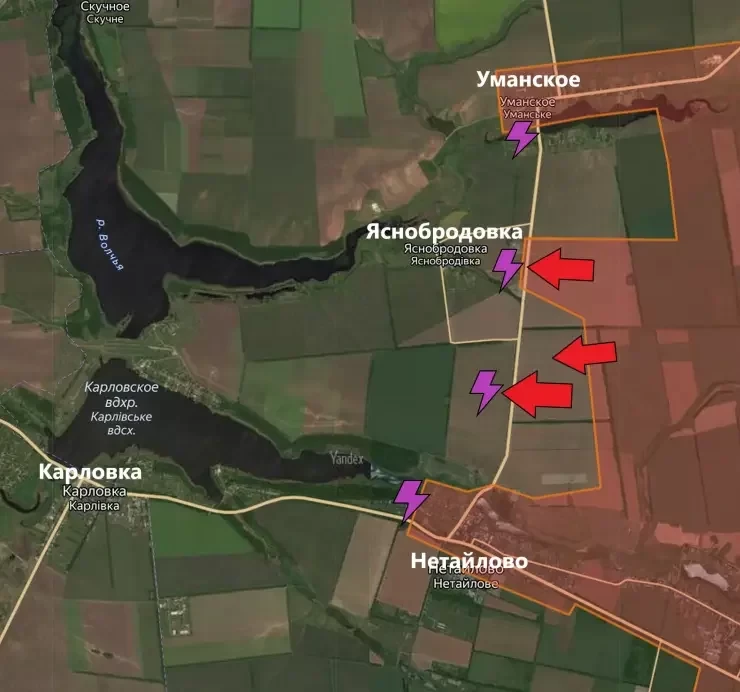 Российские войска продолжают последовательное наступление за Авдеевкой. В последние сутки фиксируется продвижение Вооруженных сил Российской Федерации (ВС РФ) на рубеже Уманское - Нетайлово. Бойцы ВС РФ постепенно приближаются к населенному пункту Яснобродовка.