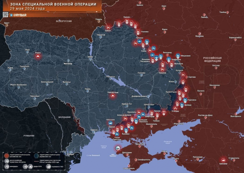 Сводка от 30 мая 2024 года - карта боевых действий, ситуация на фронтах Украине, ход специальной военной операции (СВО). Армия Российской Федерации, несмотря на все попытки украинских боевиков изменить ситуацию на поле боя в свою пользу, продолжает уверенное наступление на многих участках фронта.