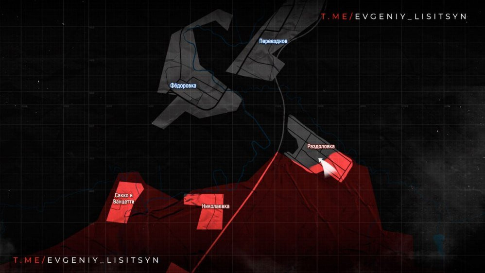 В южной части идут бои в Раздоловке. Наши бойцы присутствуют на юго-западных и юго-восточных окраинах села. Помимо этого, был установлен флаг в центре села, однако о полном освобождении населённого пункта пока что говорить рано. Ибо на роликах с Раздоловки видно, что бойцы опасаются ударов противника (и это правильно), что говорит о том, что боевики киевского режима находятся близко, пишет PulsePen.