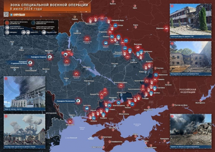 Карта боевых действий на Украине в зоне СВО по состоянию на 09.07.2024