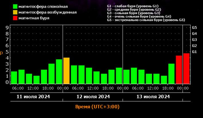 Геомагнитный фон в четверг, 11.07.2024, ухудшится к вечеру