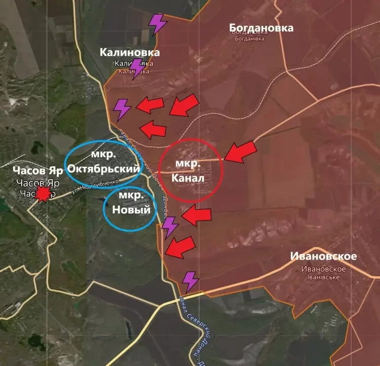 Артиллерия и авиация ВС РФ работают не только по этим населённым пунктам, штурм которых уже идёт, но и по самому Торецку (Дзержинску), где располагаются вражеские силы, пишет PulsePen.