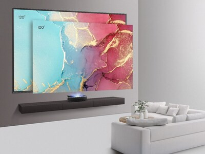 Инновационный LPU (лазерный модуль обработки световых сигналов) Hisense использует трехцветный лазерный свет RGB с технологией Ultra Short Throw для проецирования яркого 4K-изображения 3000 люмен на 120-дюймовый экран, который отражает окружающий свет. Революционный лазерный дисплей с широкой цветовой гаммой 107% и превосходной точностью цветопередачи ΔE≤1 обеспечивает визуальные эффекты кинематографического качества и поддерживает режим Filmmaker Mode. Dolby Atmos и фронтальные динамики мощностью 40 Вт обеспечивают захватывающее звучание.