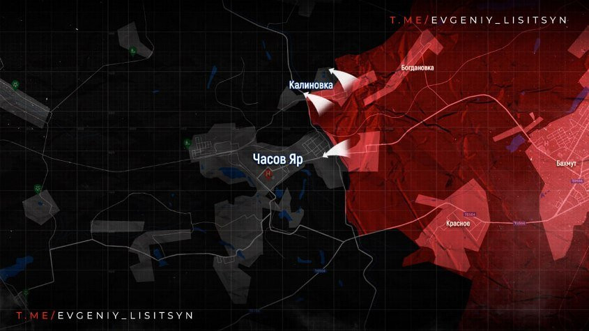 На ЧасовЯрском направлении российская армия освободила урочище Орлова и восточную часть Калиновки, продвигаясь в сторону Григоровки. Со стороны Богдановки бойцы также выдвинулись к этому селу. Севернее Григоровки находятся высоты рудника, которые ВСУ пытаются удержать.