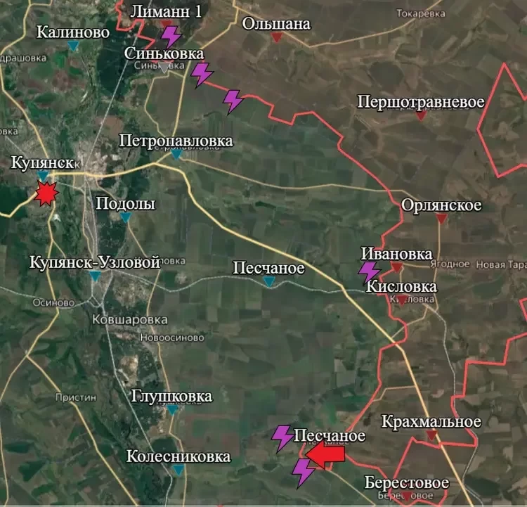ВС РФ продолжают расширять зону контроля вокруг Песчаного. Образовался уже довольно серьёзный выступ, сообщает PulsePen.