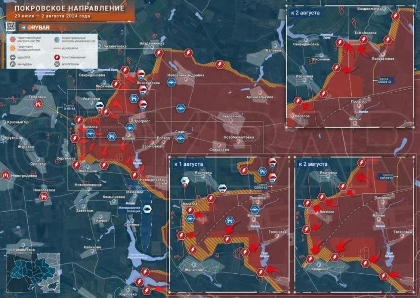 Новая карта боевых действий в зоне СВО на Украине сегодня, 3 августа 2024 года