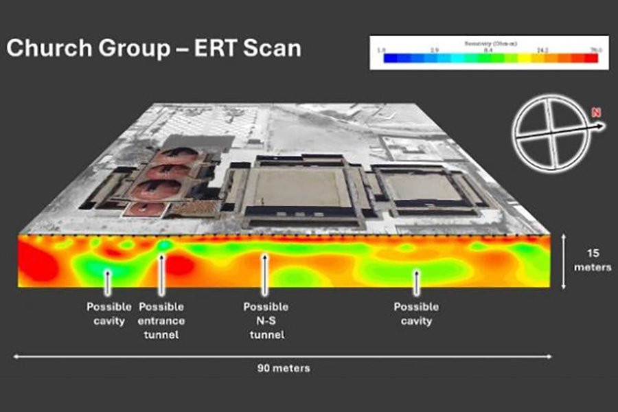 Планируется дальнейшее изучение геофизических аномалий, при этом исследователи рассматривают минимально инвазивные методы, такие как сверление небольших отверстий для установки микрокамер в камеры и туннели. Такой подход может предоставить ценную информацию о расположении и состоянии подземных структур, не нарушая при этом вышележащую архитектуру.