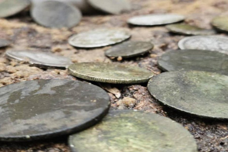 На мелководье соседней лагуны, совсем рядом с берегом, археологическая группа с радостью обнаружила широкий ассортимент европейских монет, большинство из которых были довольно старыми. Они были найдены на мелководье лагуны, недалеко от могилы солдата.