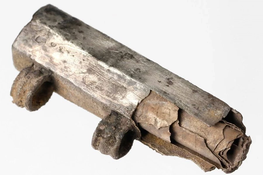 Однако чтение его было сложной задачей. Тонкий лист фольги был хрупким и скрученным так плотно, что реставраторы не осмелились попытаться развернуть его вручную, но в итоге исследователи из Центра археологии Лейбница (LEIZA) в Майнце все же развернули его в цифровом виде, используя новейшие рентгеновские и КТ-технологии. Они смогли отсканировать его в высоком разрешении, чтобы создать 3D-модель, которую затем можно было проанализировать, чтобы сложить вместе сплющенные, свернутые сегменты и сделать надпись разборчивой. Текст, который был фрагментарным из-за потери серебра на полях, затем был расшифрован теологами и лингвистами.