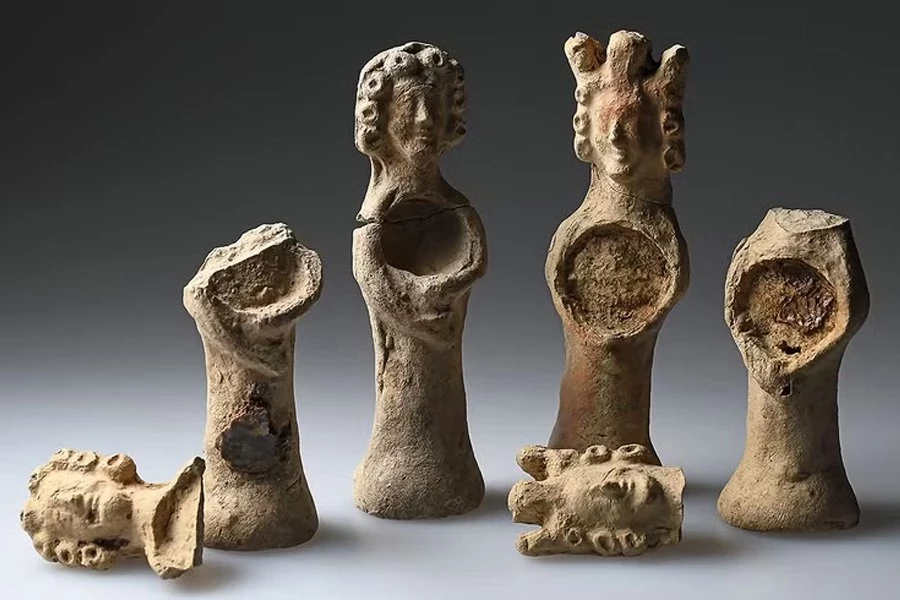 Каждая из фигурок изображает женщину и имеет высоту около 8 сантиметров. Некоторые, но не все, носят короны. Но наиболее интригующей особенностью этих фигурок являются круглые инкрустации, некоторые из которых все еще содержат остатки человеческих костей, говорится в заявлении.