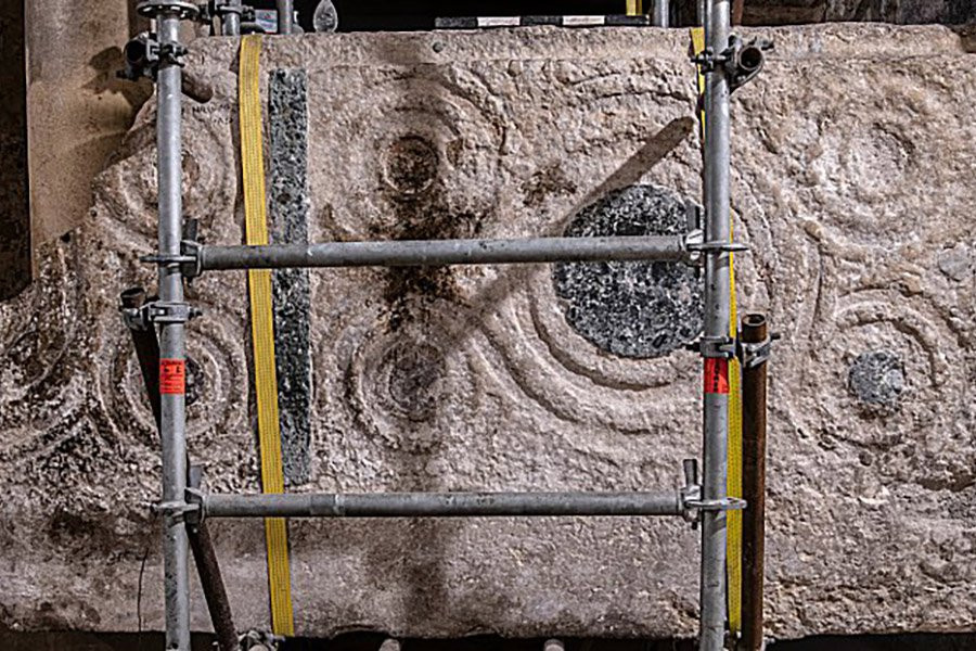 Плита была перевернута во время строительных работ, обнажив ранее скрытое художественное наследие значительной древности. Открытая поверхность, украшенная орнаментом в виде дуги, была быстро распознана как некогда прекрасный фасад средневекового алтаря крестоносцев.