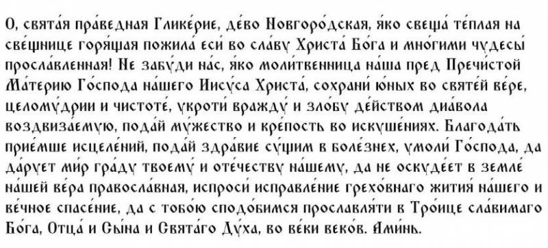 Утром предлагается посетить церковь и обратиться к святой Гликерии с просьбами о помощи в семейных делах и исцелении от болезней. Важно делать это искренне, поскольку только искреннее сердце может привлечь благосклонность святой Гликерии. Рекомендуется прочитать специальную молитву.