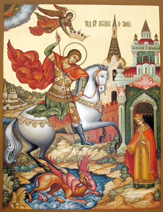 Святой Георгий, ставший символом мужества и благочестия, завоевал сердца верующих своими подвигами. Легенды и рассказы о его смелых деяниях живут в народной памяти, а знаменитое изображение, на котором Георгий на лошади пронзает змею копьем, стало символом его победы над злом.
