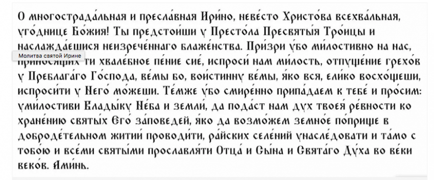 В этот день, 18 мая, верующие имеют возможность посетить храм или церковь, чтобы прочитать молитву святой Ирине. Они могут обратиться к ней с просьбой о благословении, силе и защите. Молитва может быть индивидуальной, произнесенной от сердца каждого верующего, или же она может быть частью общего церемониала, совершаемого с другими людьми в церкви.