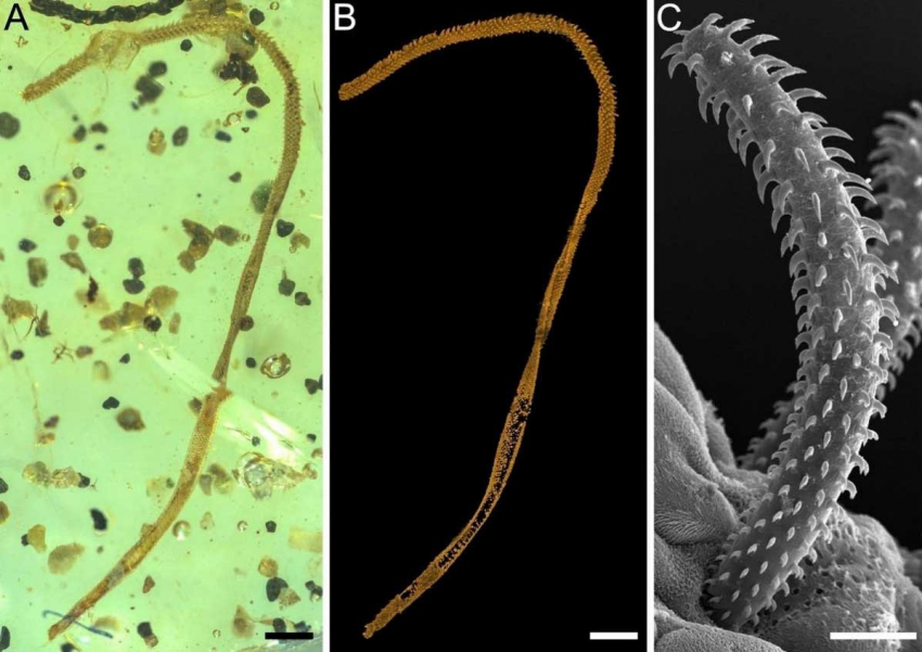 Необычная находка: 100-миллионнолетний янтарь, скрывающий часть тела взрослого ленточного червя